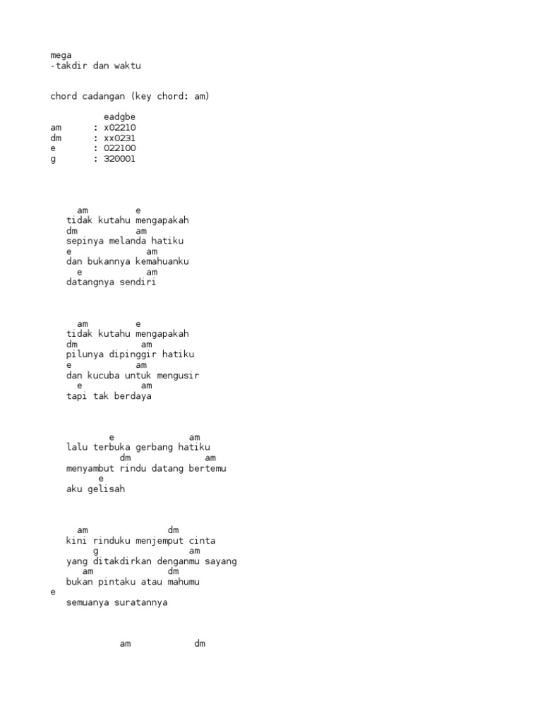 Chord Kunci Gitar Takdir Dan Waktu Mega Dan Lirik Tidak Kutahu Mengapakah Chord Guitar Music Malasyia Takdir Kunci Gitar